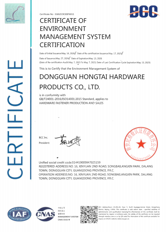 東莞市紅泰五金制品有限公司,公司占地六千多平方米,擁有五十多組螺絲機及六十臺自動車床設備。是一家專業設計、生產ISO、DIN、GB、JIS、ANSI、BS及客戶指定特殊要求的高精密五金緊固件的制造企業。